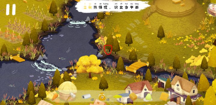 蝉的位置,我已经把蝉给收取了所以上面没有显示,蝉的位置在树上,比较显眼,不在这个位置的小伙伴也可以自行寻找一下,不难的