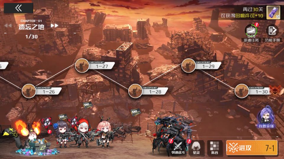 完成章节各阶段关卡,可领取奖励。作为萌新,优先完成1-30关卡挑战,解锁关卡『跳过』功能,将大幅加快提升进度。