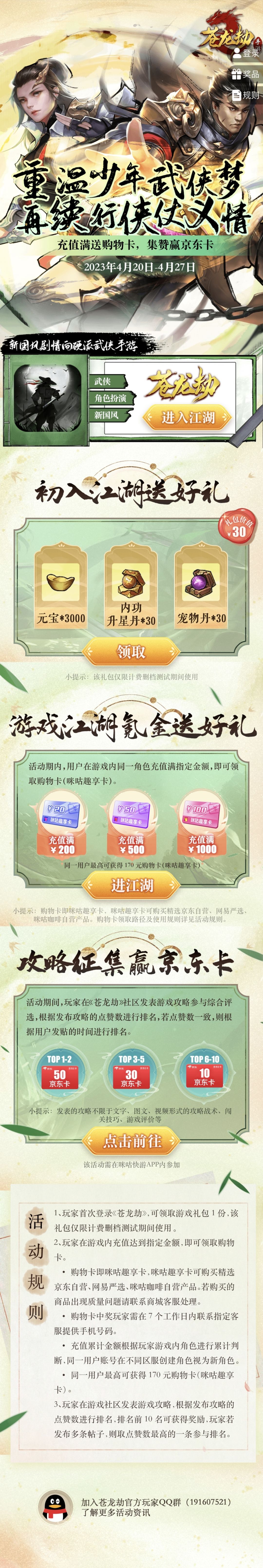 《苍龙劫》删测来啦!充值满送购物卡,集赞赢京东卡~