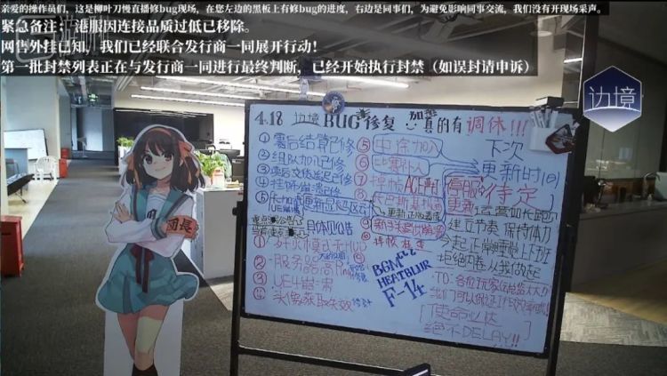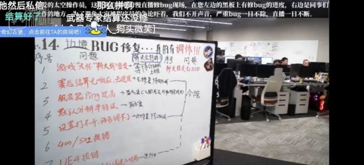 但是,在接下来的一周时间里,柳叶刀工作室展开了背水一战。他们以“慢直播”的方式,直播修复上述的问题。他们在镜头面前摆了一块白板,列出玩家重点反馈的问题、相应的解决方案、预计的解决时间。