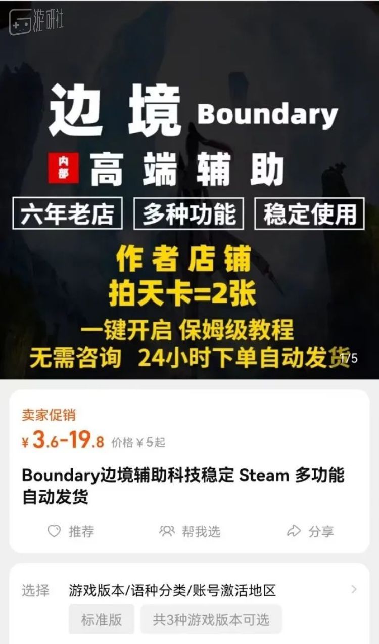 开服首日,淘宝上就出现了售卖《边境》辅助外挂的店家;之后几天,玩家反馈在游戏中碰到外挂用户的案例也变多了。