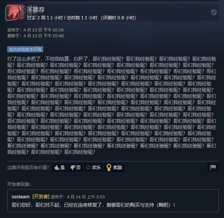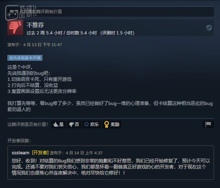 抢先体验测试反倒是个正确的策略。以前《边境》的内部测试,参与人数规模较小,样本容量仍显不足,导致许多问题只有在大规模公测时才纷纷显现出来。抢先体验开辟了Steam的评论渠道,有利于广开言路、开诚布公,方便官方注意到潜在问题并一一改正。