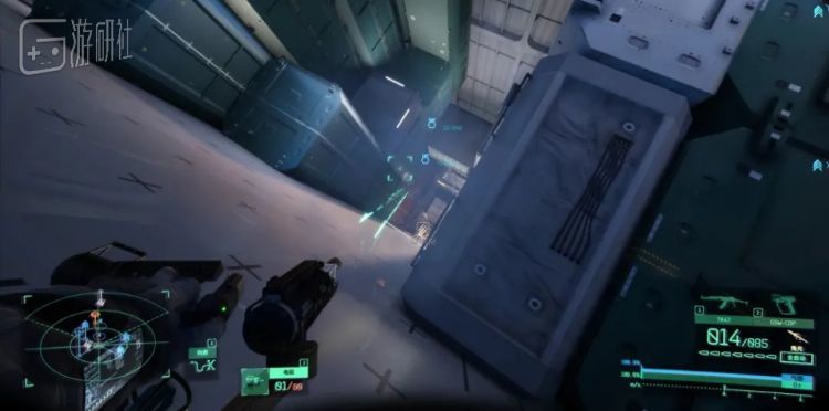 《边境》将玩家扔到了又冷又空的宇宙里,再用一套结实的宇航服包裹起来。传统FPS中的二维或三维运动法则,不再具有普适性,取而代之的是六个维度的全方位运动,整体表现更像空战游戏,只是少了计算重力势能的环节。
