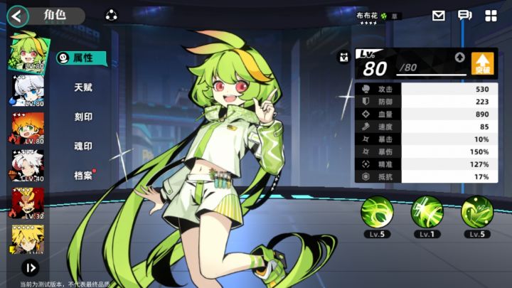 战神联盟池子出的盖亚,哈莫池子歪的雷伊,普通池子又出盖亚,非酋保底人了。我第一天能推到主线第一章全部内容的阵容是布布花、克拉肯、吉尔,分别都拉到80级。吉尔刻印带送的强者之证三件套,攻击暴击属性,布布花和克拉肯带虚空套,布布花精准生命属性,克拉肯生命属性。布布花天赋激活到升级第三技能,剩下的天赋也可以给吉尔升,克拉肯可不升,打不过主线就手动操作或者继续养成。这次三测晚参加了,现在应该算测试的第七八天,但我是昨天才创的号,只是昨天没空发,今天发也一样了。