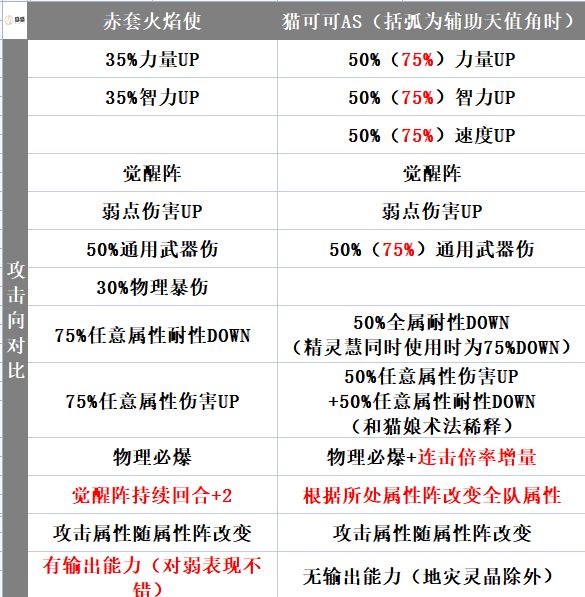 ④猫可可具备游戏唯一的,队伍属性变化机制,这一点赤套不具备
