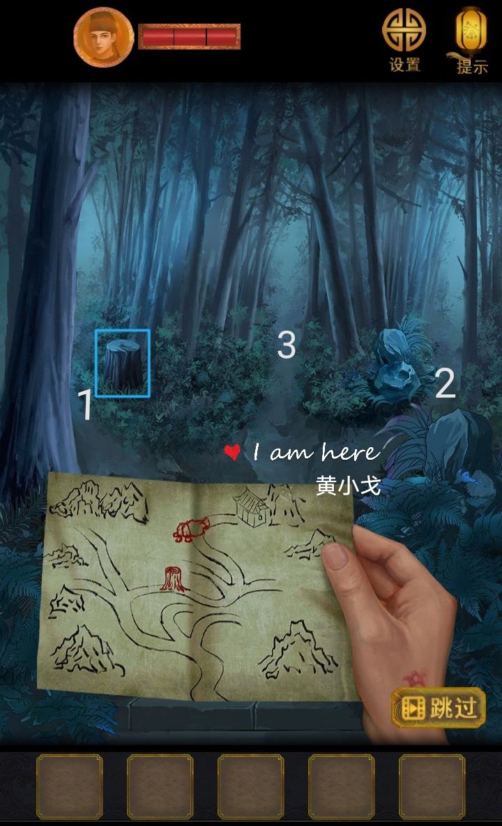 21.(庙内-中间场景)点击左边的八卦图,结合石台上的线索(注意滑块滑到左边:兑离艮震坎)和布上的八卦图(兑-泽、离-火、艮-山、震-雷、坎-水),按泽火山雷水的顺序点击按钮,触发机关