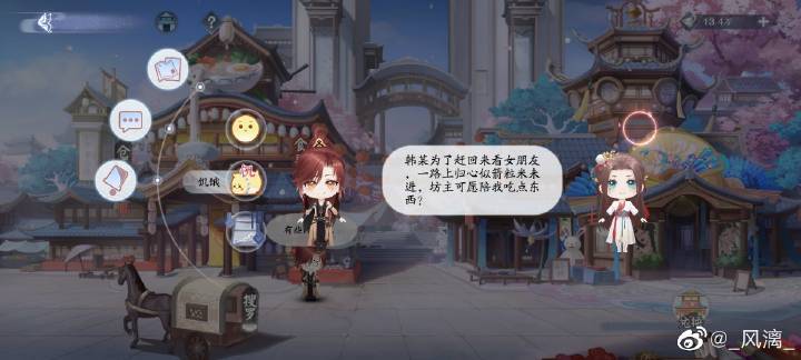 3、询问客服得知非标识礼物好感加得多是因为恰好有【加成】,加成是规律随机的,意思是你今天送这个礼物不喜欢,可能明天就喜欢了。要点击界面里闲逛的男主qq人,查看状态,如下图韩絮饥饿状态,此时送饮食类型礼物都会喜欢(见下图1,来源攻略组微博评论区)。遇到男主qq人概率奇低,所以一般玩家可以参照文末的送礼攻略,但不一定完全命中。