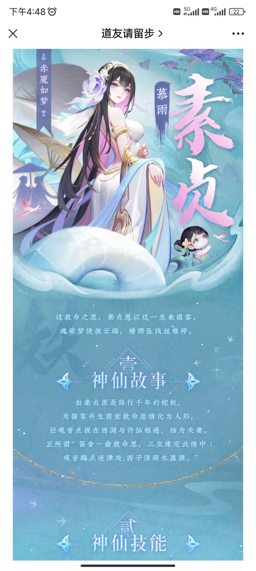 半是凡心半是仙,蛾眉空付一千年。断桥难断尘寰事,西子湖畔续前缘 是谓慕雨白素贞 如此忠贞女子,不爱她爱谁