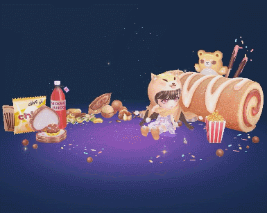 自己身边都是喜爱的零食,
