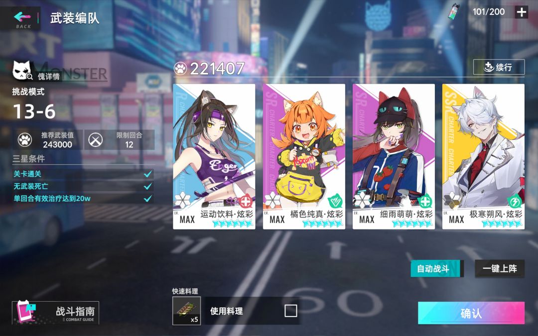 核心就是司诺和细雨,第一回合即可达成第三个条件,其余两人可自行替换,只要不死就行,最好别带山明和瑶瑶。如果没有达成第三个条件,原因可能是细雨练度太低了,或者阵容中有角色第一回合给了盾、减伤。