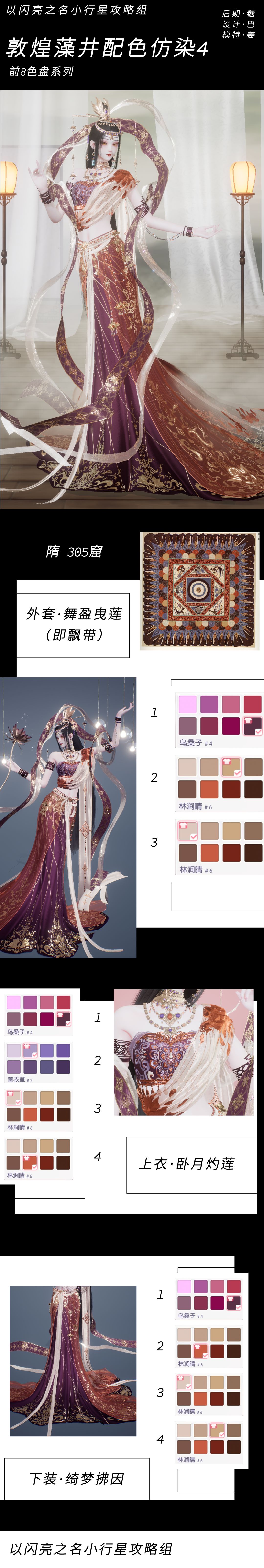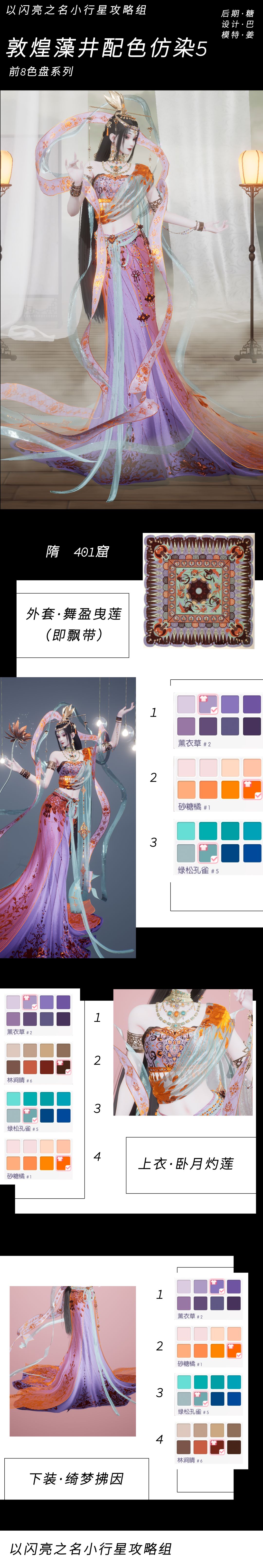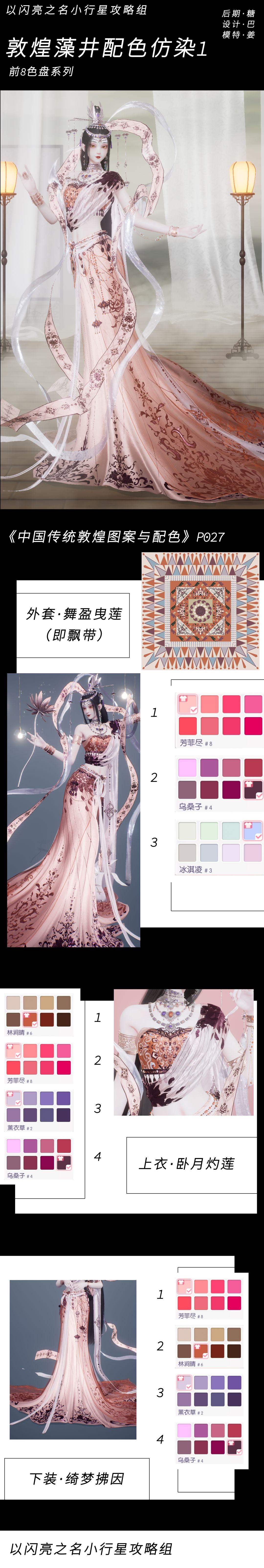 染色参考资料部分来自《中国传统敦煌图案与配色》,部分为自行检索的高清藻井照片,参考图大多为复刻/修复/复原后的内容,因此可能与现实藻井颜色有所出入(毕竟时间总会留下痕迹)。