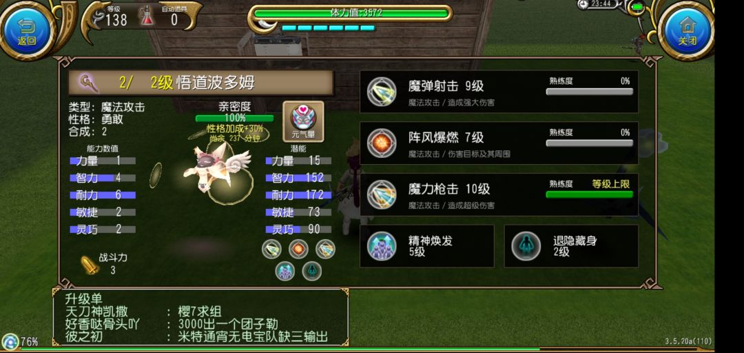 这是一只4级魔枪大概46-48小时,估计就这样了我也不会去练它了。