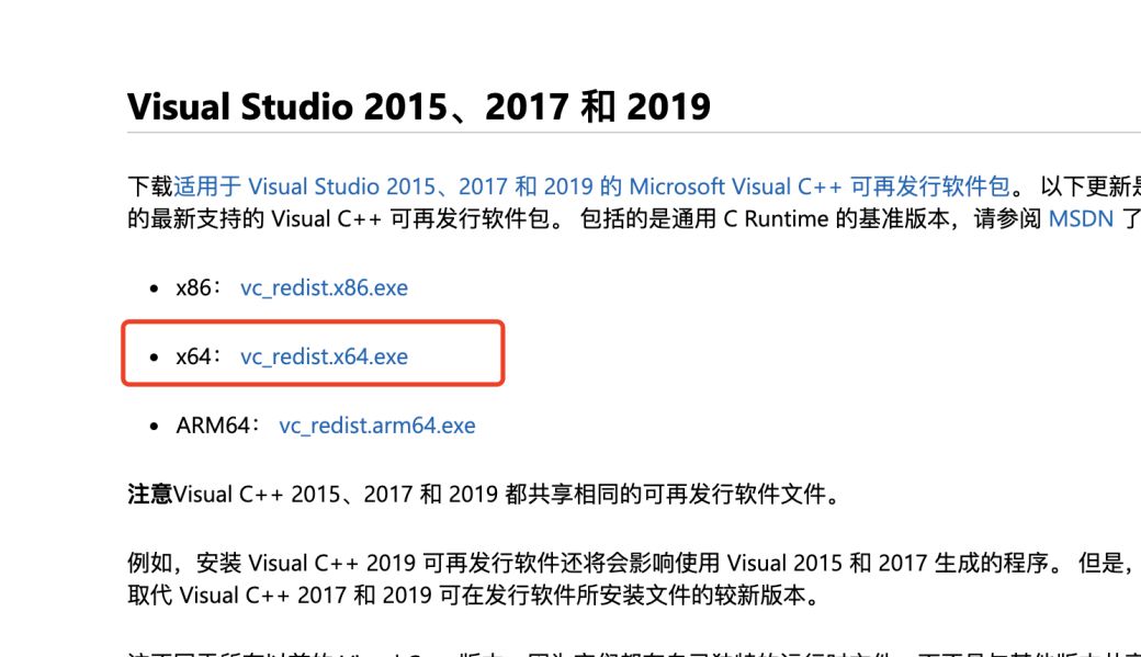 或去下方微软官网下载安装最新的“vc_redist.x64.exe”,再重新运行游戏。