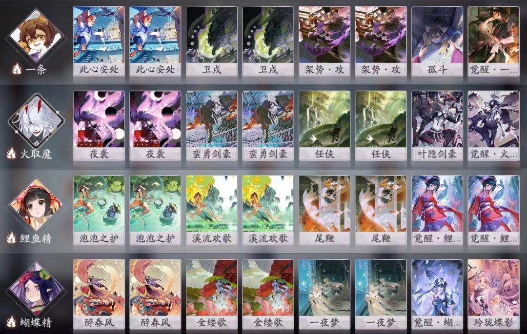 此外,常见的还有鲤鱼精换成彼岸花,这里因为赛制因素,一个式神只能出阵一次,都进了花修。