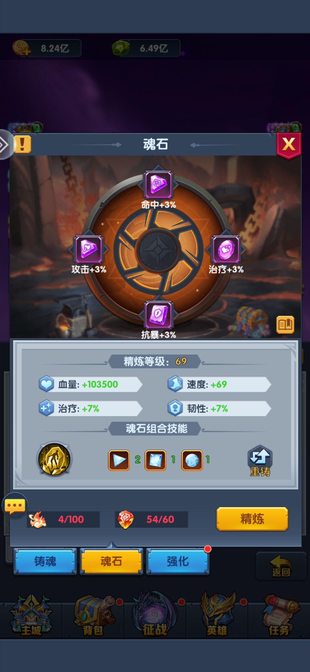 路西法铸魂:铸魂建议把鞋子铸魂满,那个是回血的,满级技能回英雄造成伤害的18%血量,回血非常多。魂石技能就免死。