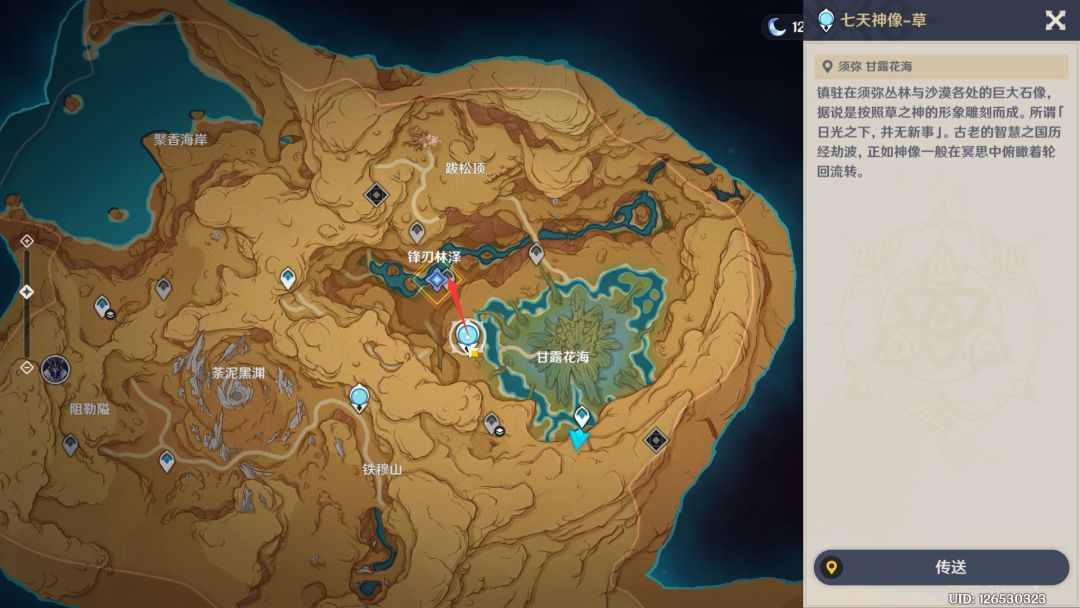 传送到甘露花海左边的七天神像