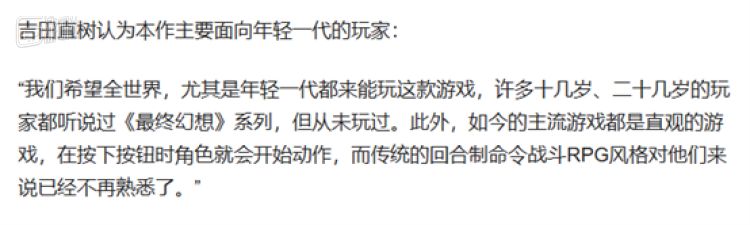 吉田直树在接受日媒ComicDays采访时强调本作将面向年轻玩家