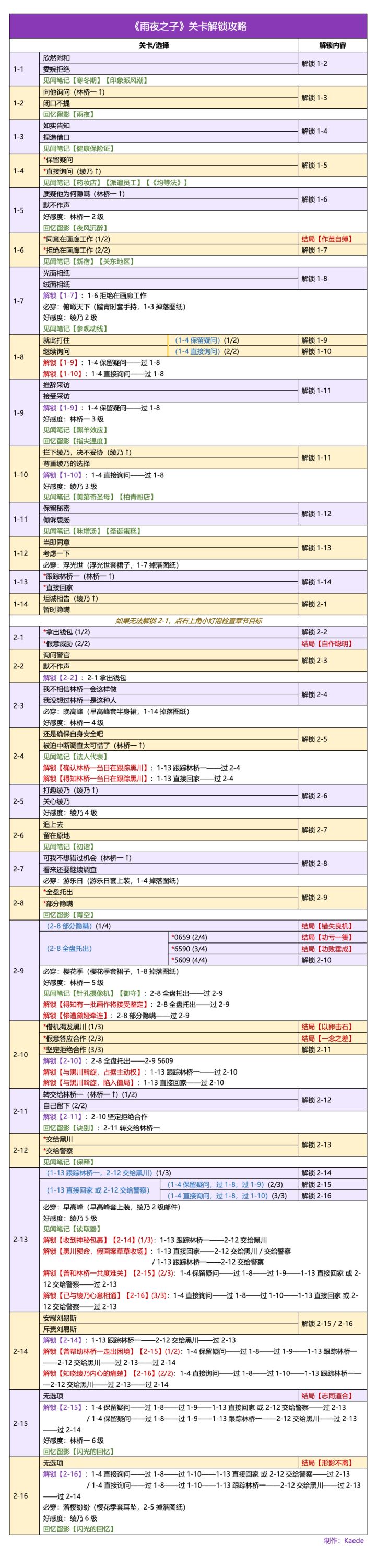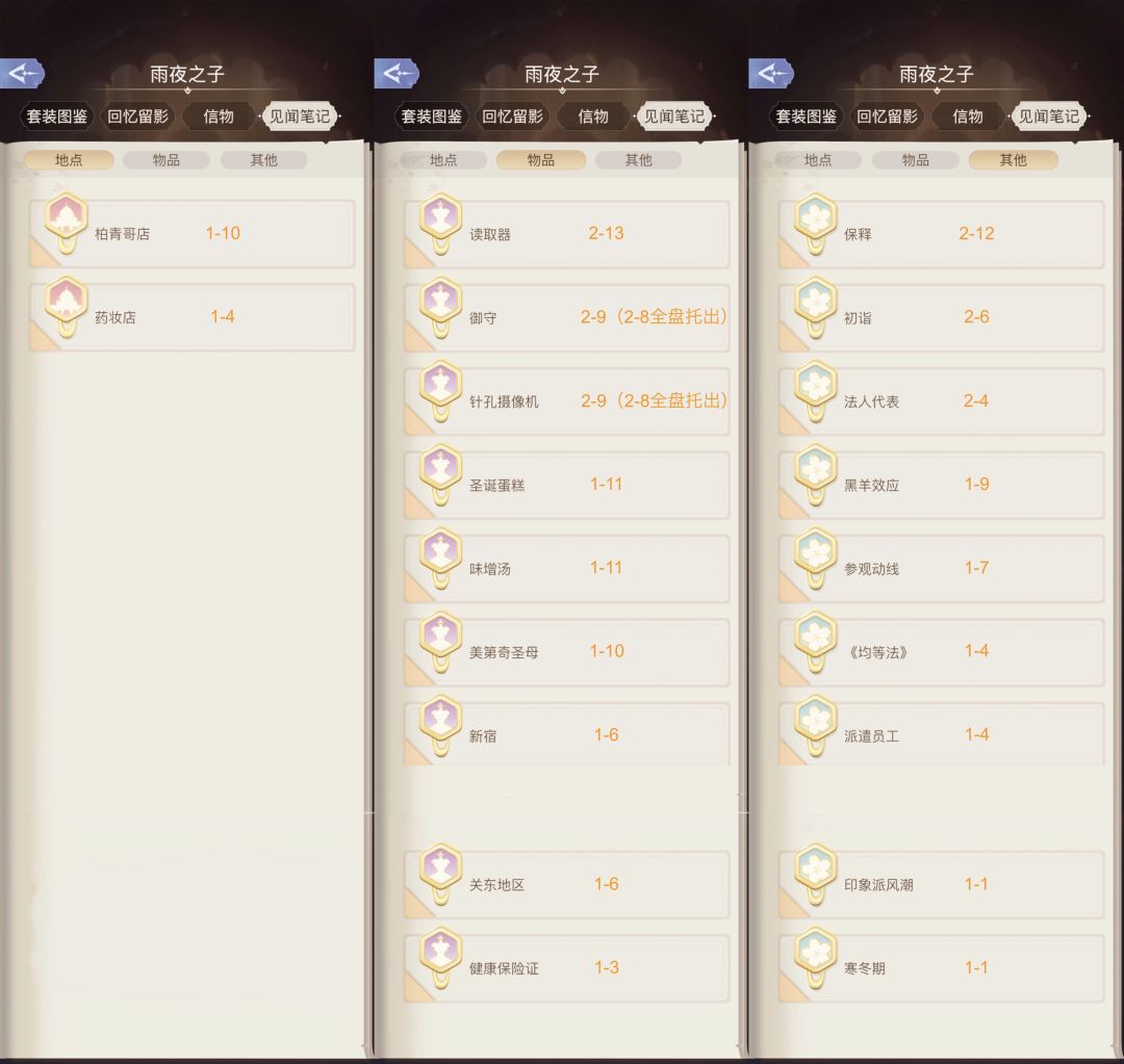 🍀《雨夜之子》关卡解锁攻略 / 必做 / 见闻 / 留影