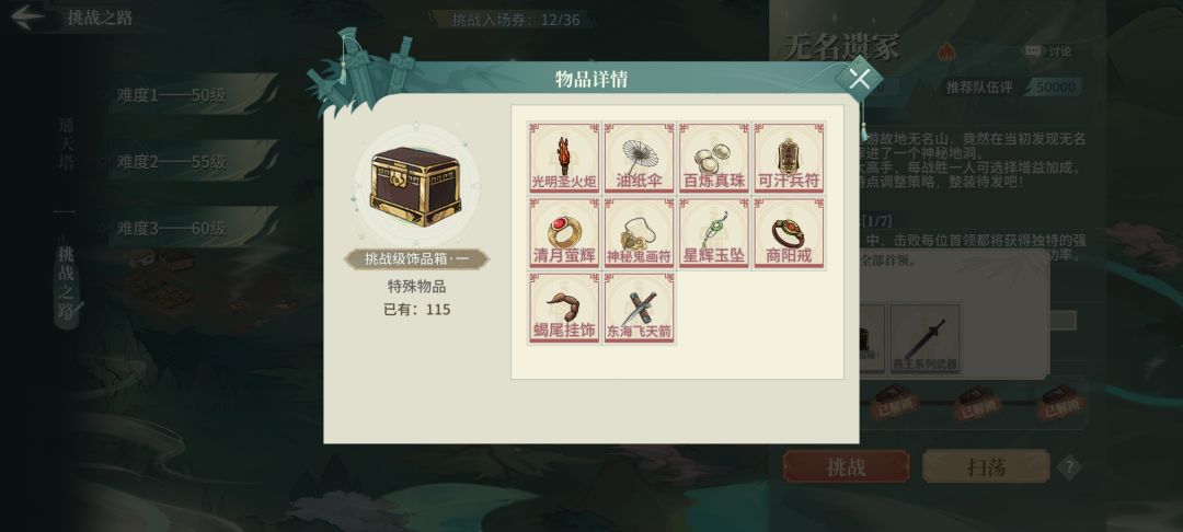 挑战级饰品箱1。光明圣火炬是张月的常用饰品,加定力加血量。油纸伞很少用了,百炼真珠的话肉小和尚用起来不错。可汗兵符一般是闪避生孩流使用。清月有开局长时间天佑,属性也不错,加上给队友抗性,属于不错的辅助饰品。鬼画符,闪避流的主力饰品,张月也可以用一用。星辉玉坠及后面装备使用率更低。