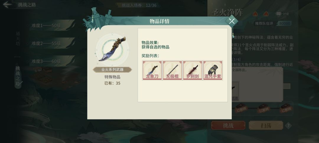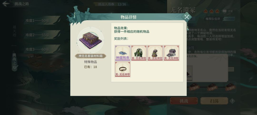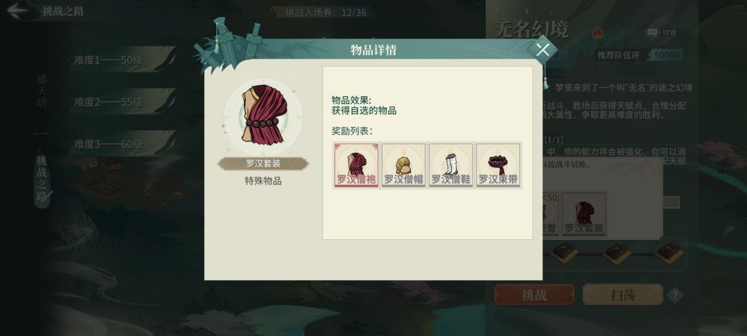周二,周五,圣火扫荡55,无名幻境扫荡60,建议优先圣火,或者无名幻境先扫几次做一个腰带一个鞋子也行