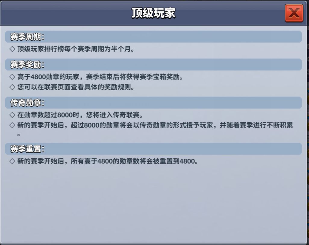 目前的版本中,在新的赛季开始后,所有高于4800的勋章数将会被重置到4800