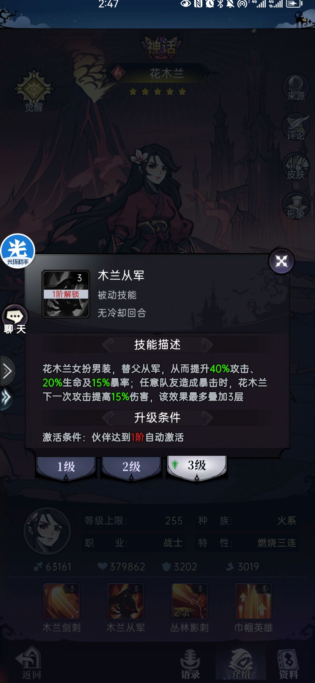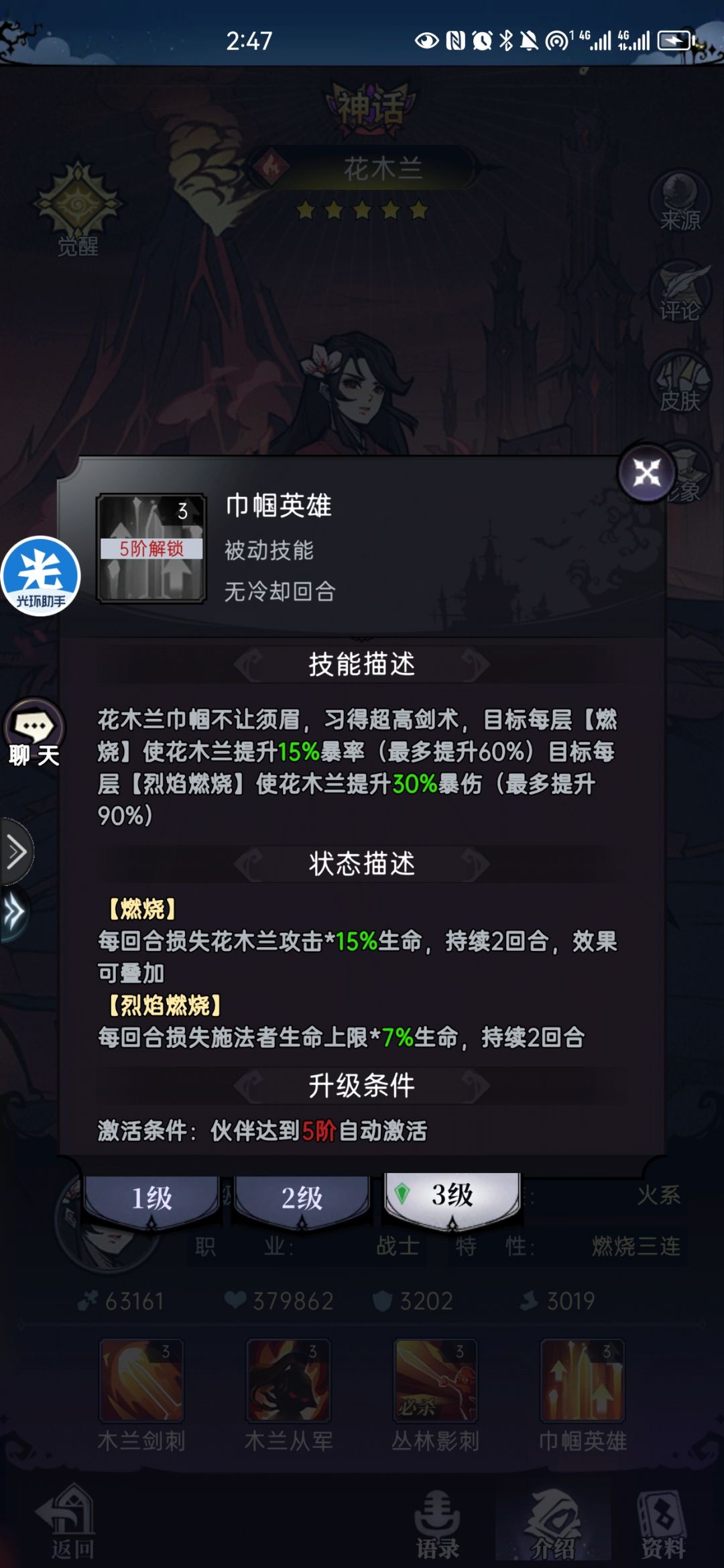 最后要说的重点是木兰,猫本身系数不低,但不能当主c(猫队主c是浩图)的原因是不容易打出暴击,不带符文只有30爆率低的可怜,并且本身爆伤没有太大加成,所以成为了工具猫,木兰独特的燃烧加爆机制,让她大放异彩