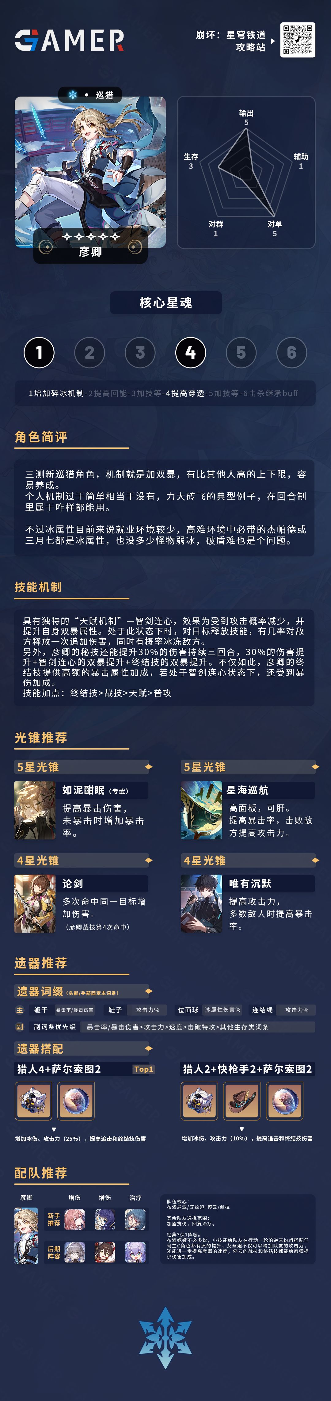 【星穹铁道】五星常驻角色 彦卿 一图流解析