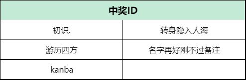 中奖名单公布