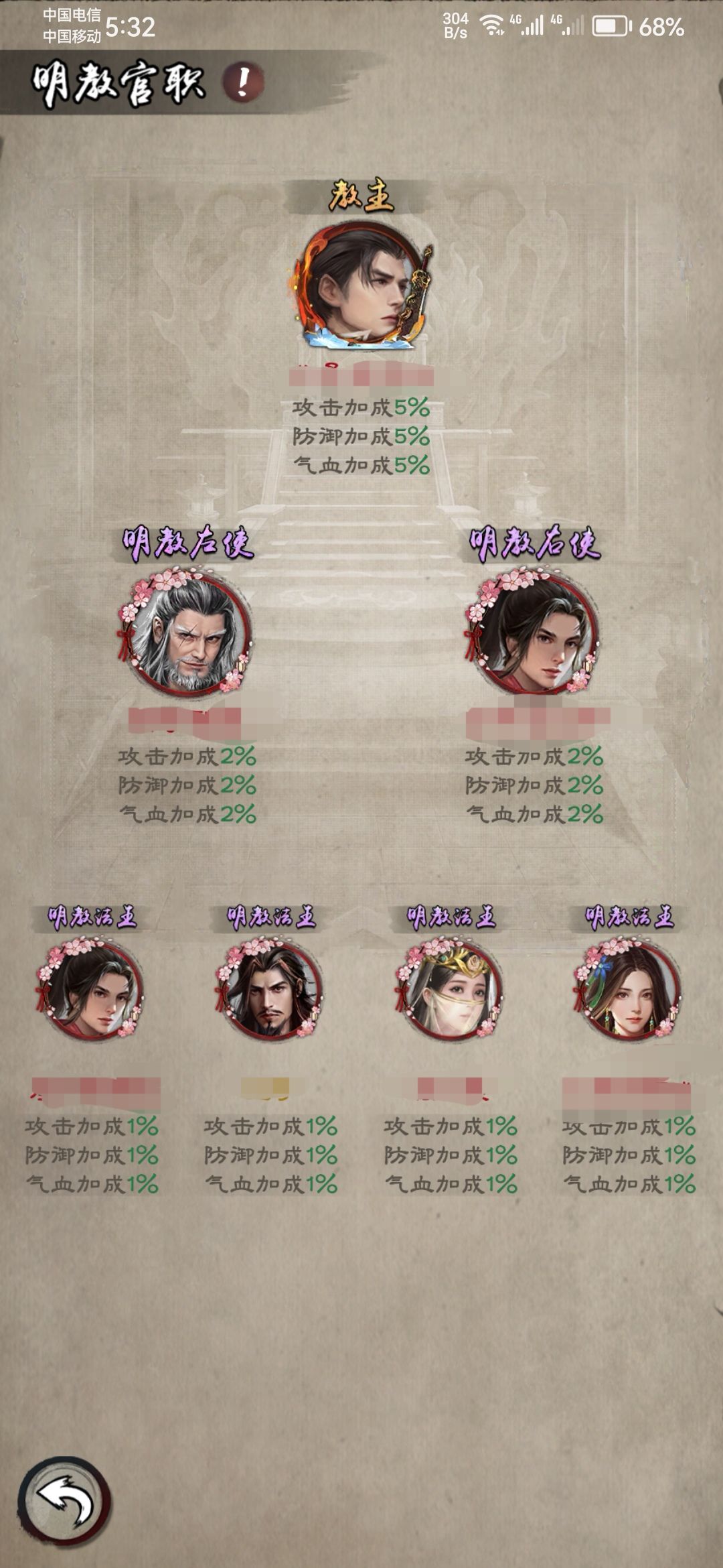基础玩法介绍:1.统计名单,拥有六个领地包括门派及堂门即可参与活动。2.积分获取,攻击Boss,击杀五行旗,击杀其他帮会成员(连斩额外增加积分)。3.npc刷新,每十分钟五行旗刷新一波,活动进行十五分钟刷新明教Boss(击杀Boss帮会成员可获取积分加成持续五分钟)。4.活动奖励,上榜帮会所有成员获取大量元宝帮贡赛季积分及赛季币奖励,积分第一名的帮会获取光明顶归属权,进而解锁官职特权取得高额属性。