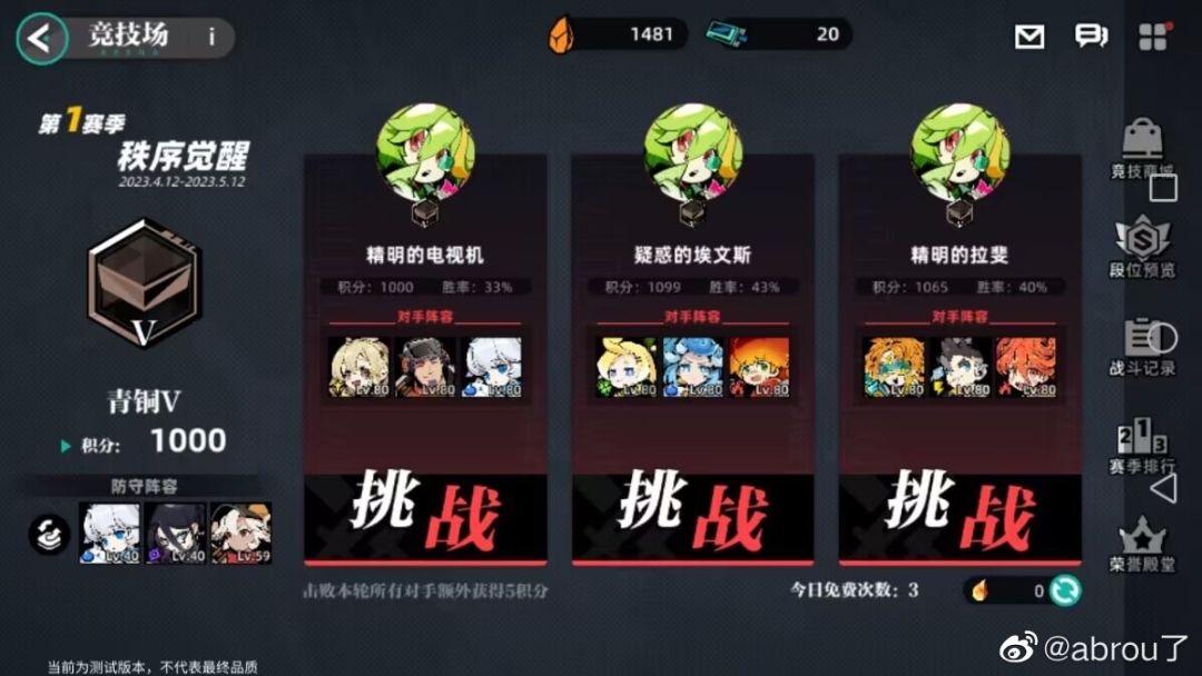 #赛尔计划玩法3#庆典嘉年华主线第一章2-12解锁,社团主线第一章3-12解锁 加入社团可以参加社团活动、完成任务得奖励,还有社团商店可以换资源奖励等。成就主线第一章3-12解锁 完成成就得奖励,主线第一章4-12解锁竞技场 上阵3人挑战他人,提高段位,奖励越丰富,每天5点重置给20张竞技劵。主线第一章5-13解锁异度空间、勇者大会、巅峰之战,勇者大会挑战得奖励,巅峰之战PVP对决