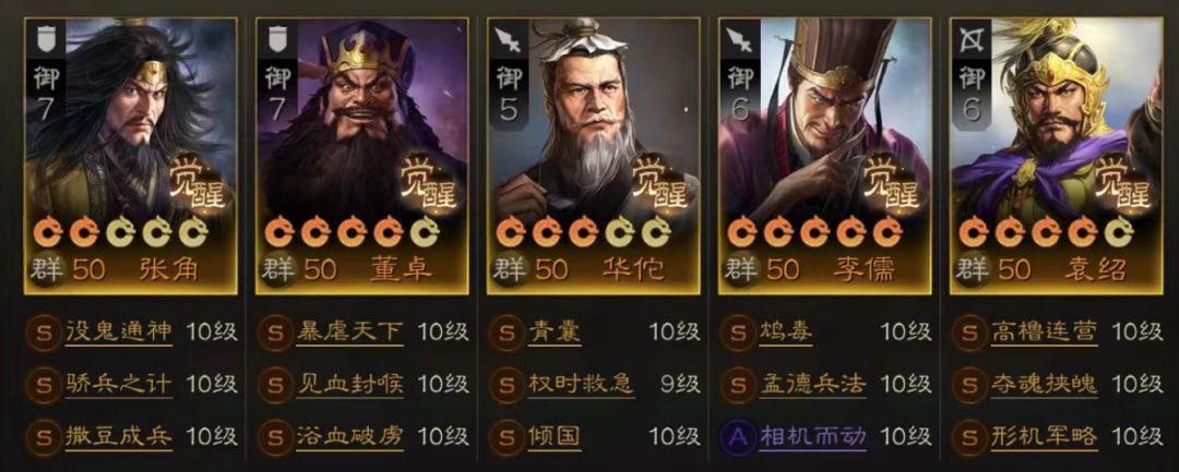 所以顶配的群雄是必带这三个武将的,那么剩下两个武将我认为是李儒和袁绍。