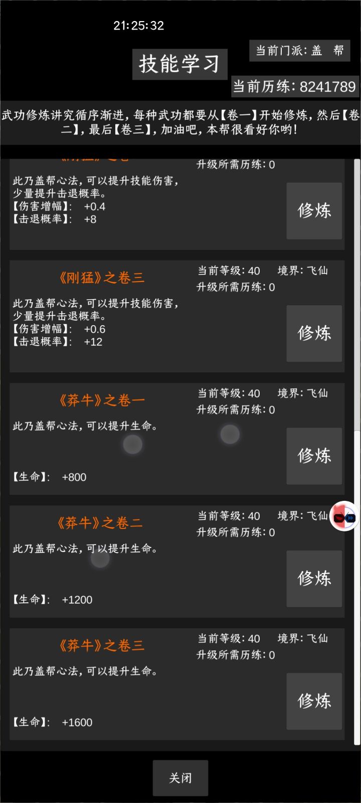 这里分别放上了,初级技能和满级技能的区别,初级技能是给新手算所需技能飞仙所需飞仙酒的数量的,就是初始技能所需经验出除以1000,比如第一个攻击技能,初级需要1000那就是一个酒!就这么算。后期会发别的门派,这样新手可以选择花费少的酒的技能学习,这样可以快速升级!