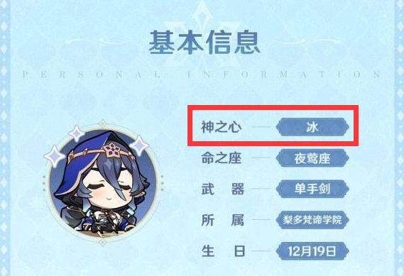 而在莱伊拉正式上线之前,官方对莱伊拉的基本信息介绍中,最开始的文案为“神之心——冰”,如上图。