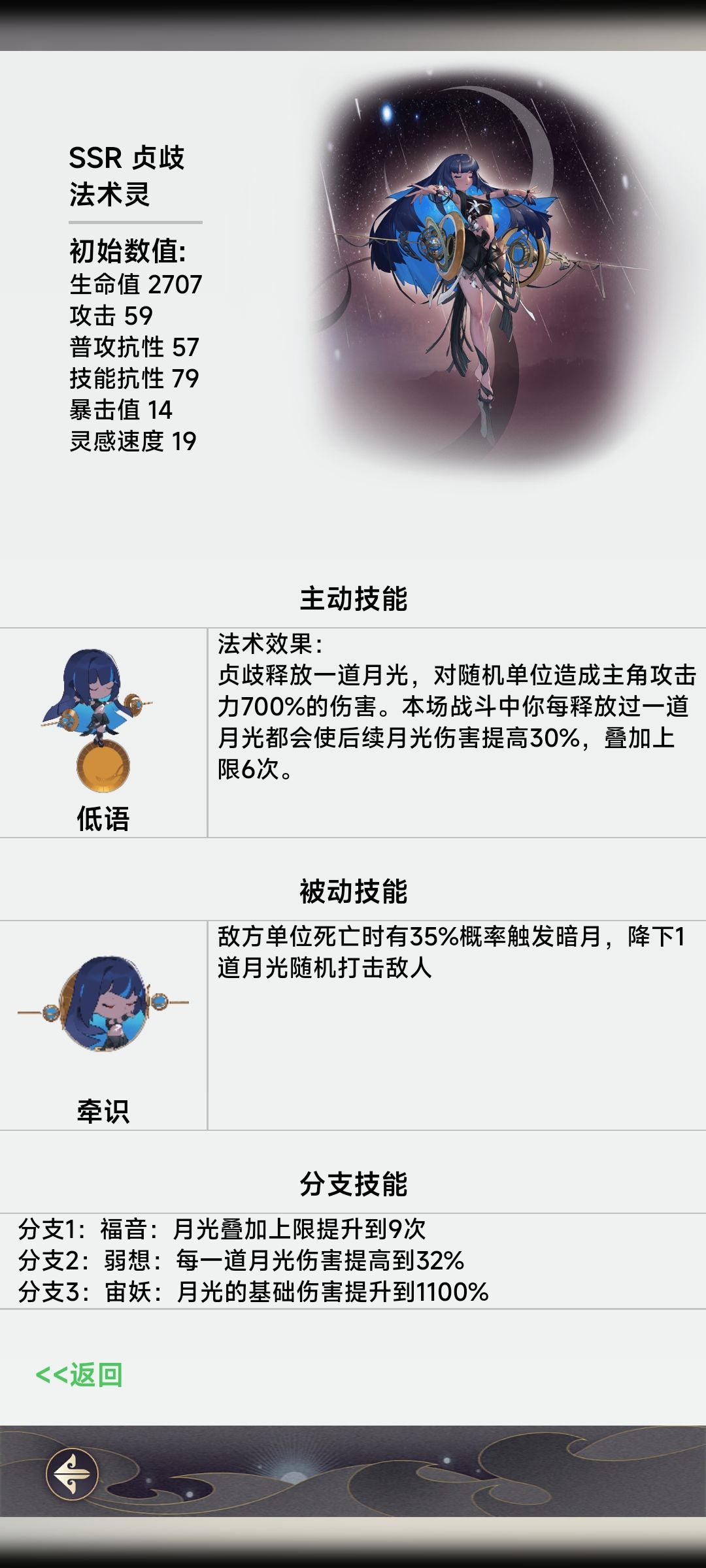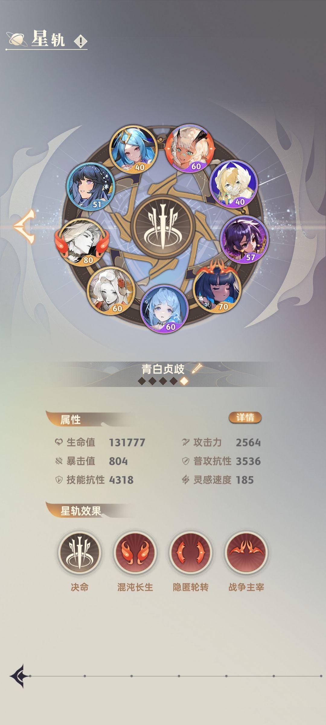 我给这个队伍起的名字叫做“青白贞歧”,分别代表这个队伍的四个核心:青=青折;白=白戎;“贞歧”的“贞”代表SSR法术卡贞歧,又叫小鹿,“歧”代表R法术卡歧,是个奶量不太高的奶。