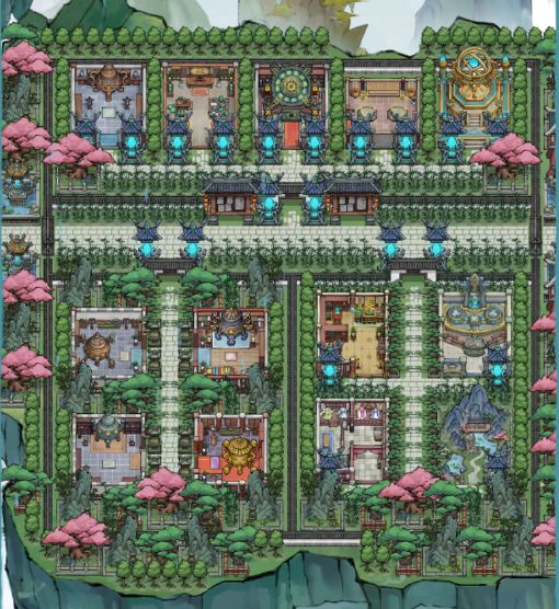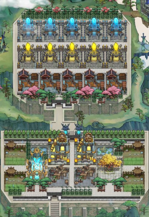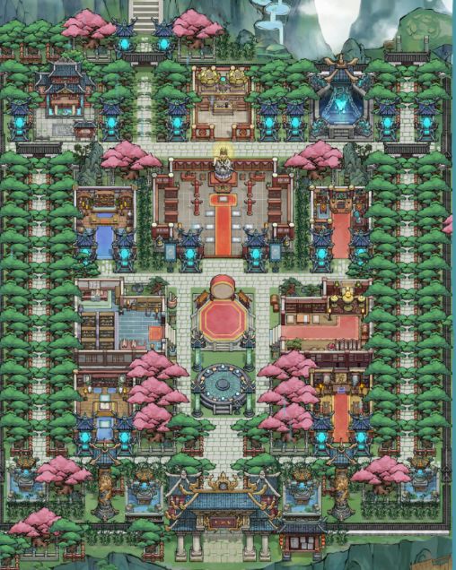 经过长达2天的思考优化,全新门派装修布局出炉,供各位道友参考~