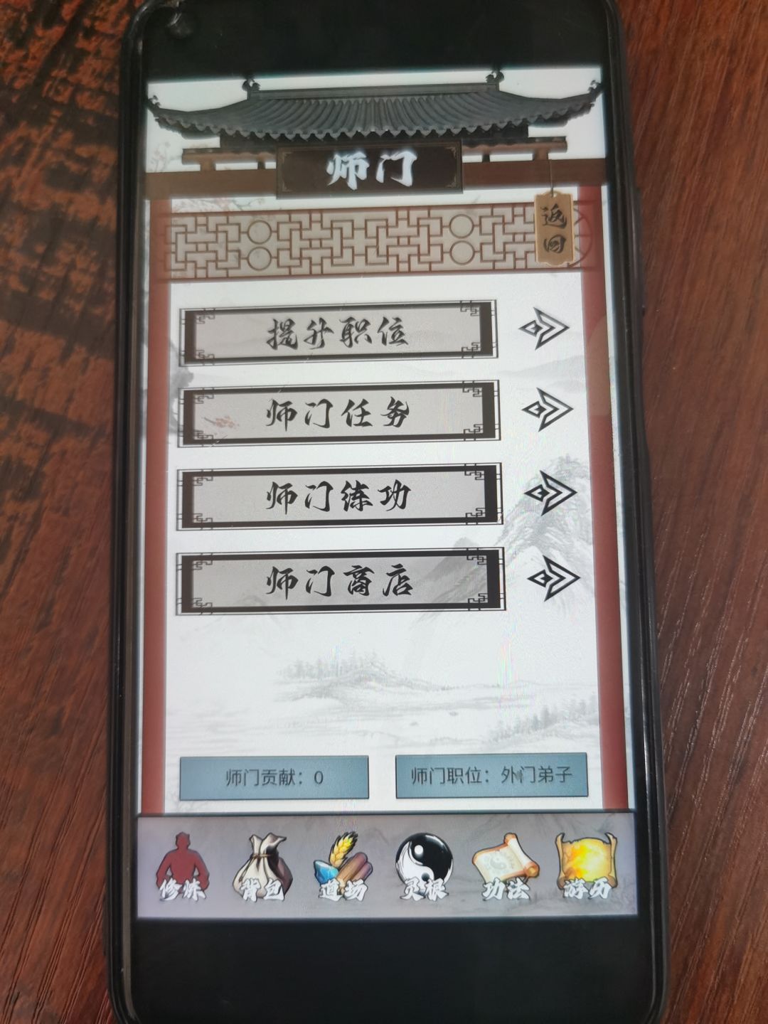 7.师门任务,上游戏进来就点上,自动获取贡献。第一天的功法不要着急去练,贡献100点就能提升职位,到内门弟子,在练功,这也是我实操经验来的。还有后面的精英弟子真传弟子等练功 看自己情况而定,当天要是能升大境界就等大境界过在练功这样加多些修为。