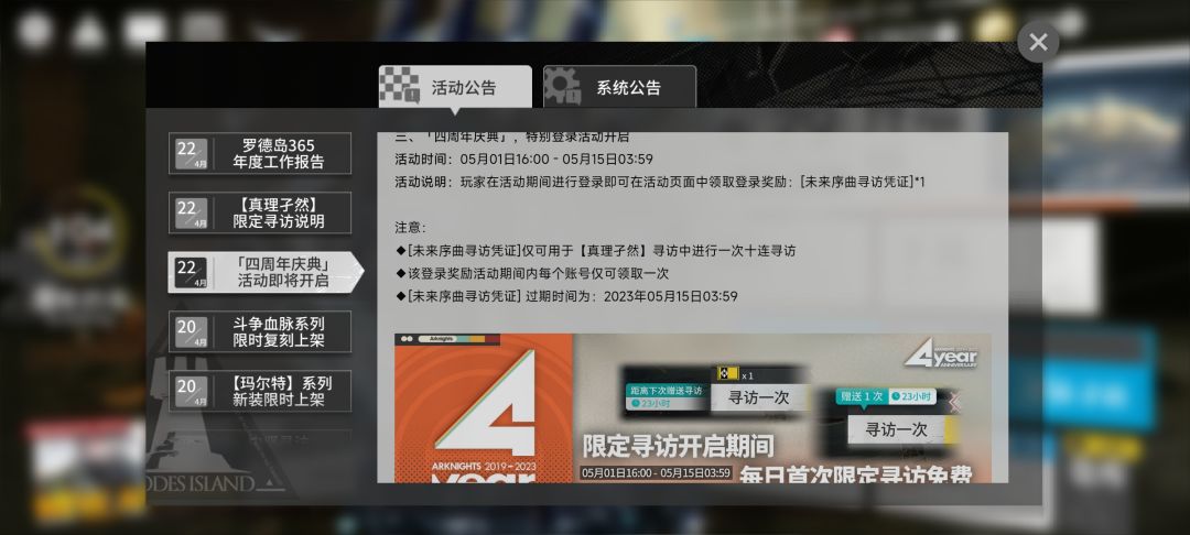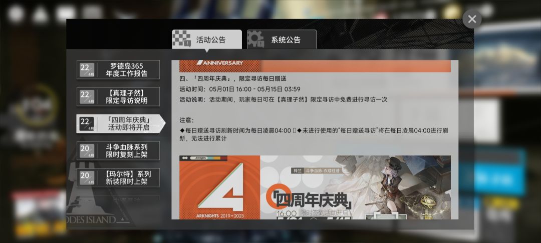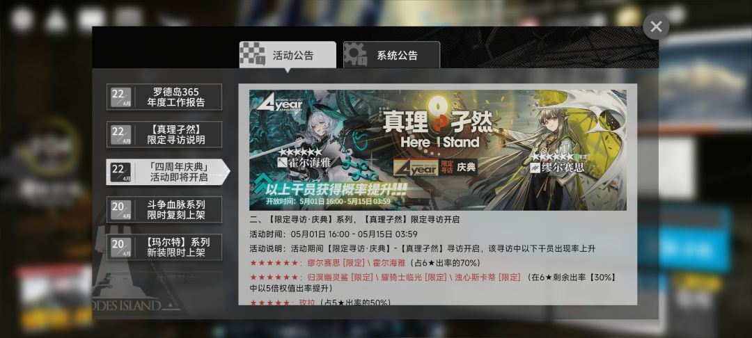本次四周年限定池限定干员为缪尔塞斯以及陪跑干员霍尔海雅(都想要