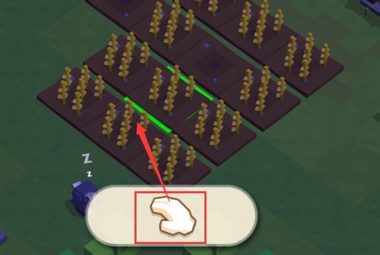 新手任务:小麦如何收割?└ 点击小麦会跳出一个手套图标,拖动手套放置到小麦上面
