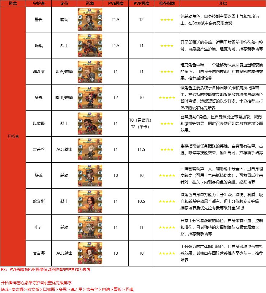 末日来袭「开拓者」&「独行者」&「追随者」&「离心者」阵营守护者强度榜