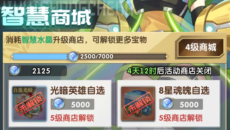 一级商城:高级召唤券、智慧幸运宝箱(小贵)