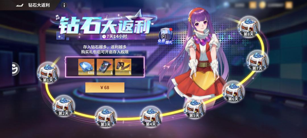 活动期间前往钻石大返利,可领取免费赠礼,购买礼包后还可激活存钻返利资格,经纪人可以从3档中选择1档进行存入,返利将分天进行发放,活动期间低档位可以向高档位追加存入,已领取的钻石差额将在追加后立即发放,活动期间钻石存入上限为25000。