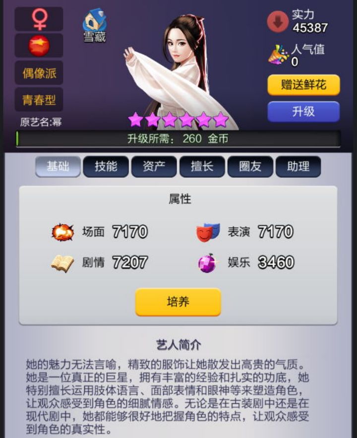 新增完美饰演系统:使用特定的艺人出演特定的剧本角色,将获得票房加成