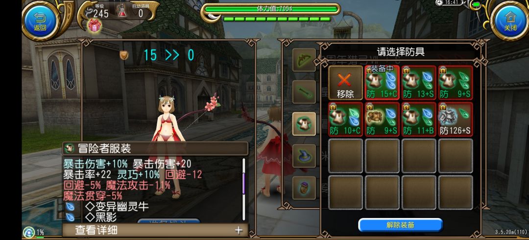 小提示:附魔的暴击率上限=当前版本最高等级÷10,去掉余数。245的话附魔暴击最高就是24,现在爆伤最高是21,我衣服附魔是以前的了,没钱钱换✪ω✪