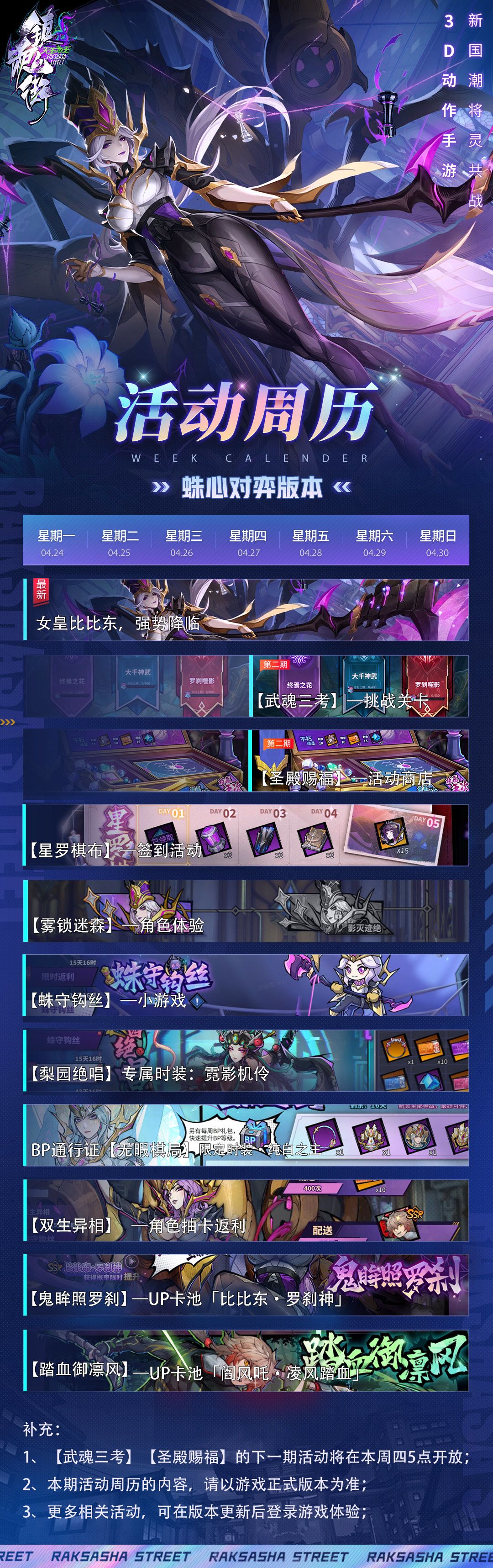 【活动周历】「蛛心对弈」版本4月24日-4月30日