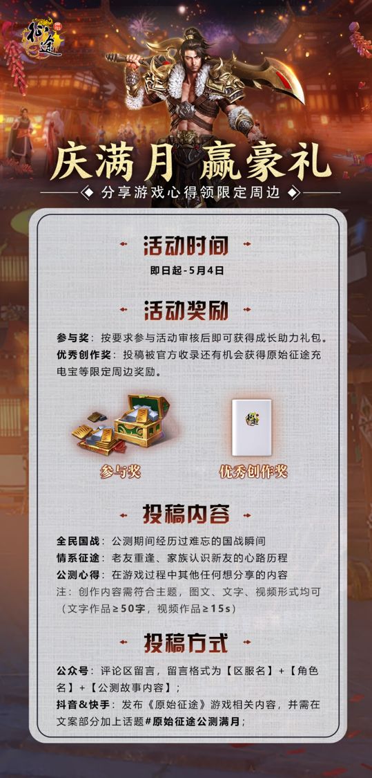 即日起至5月4日,分享游戏心得领限定周边!扫描下方二维码,关注《原始征途》官方公众号,每周都有福利哦~