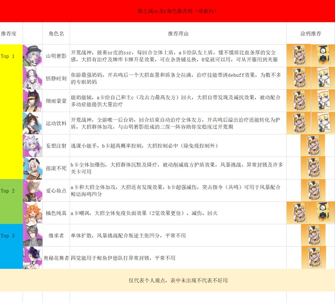 根据本人开服至今的经验友情推荐,萌新不懂养谁可以稍微参考一下,不保证一定对你有用。