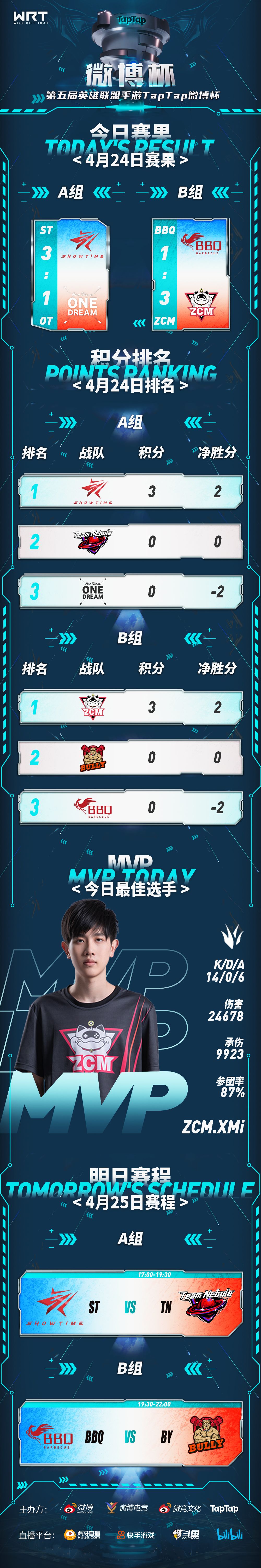 【小组赛Day1赛果&明日赛程预告】ZCM.XMI获今日MVP