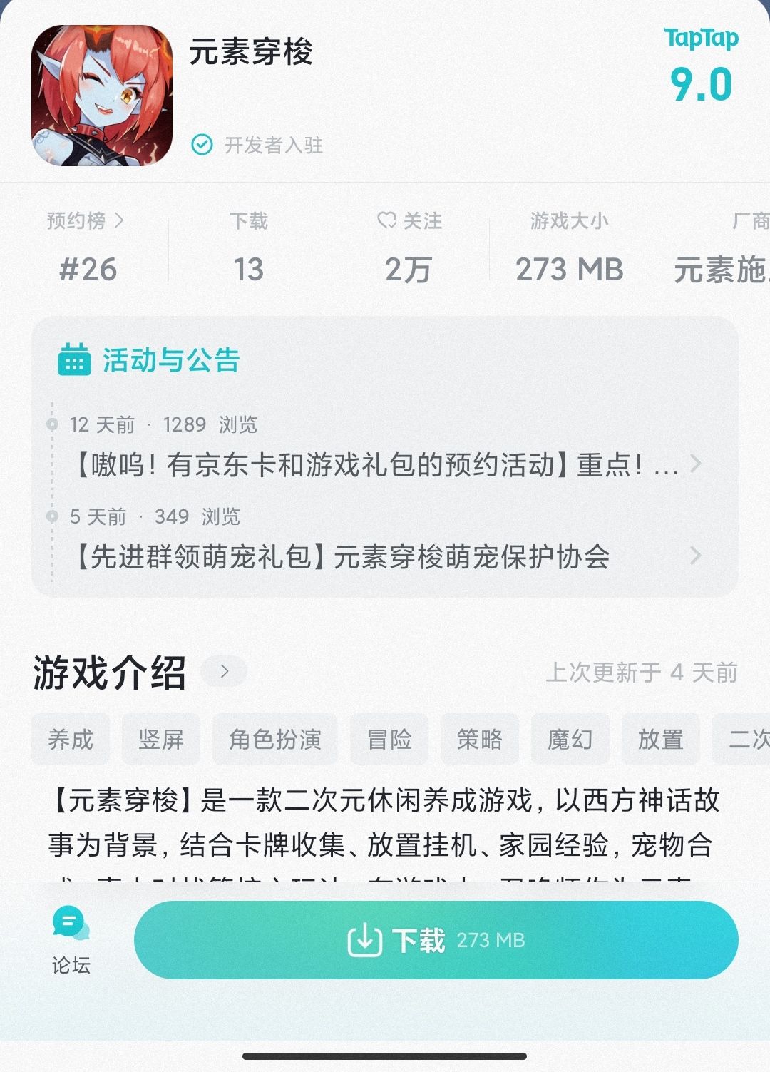 《元素穿梭》预下载功能已开启,大家可以提前下载游戏安装包,待游戏在【4.26日10:00】首发开服后,就可以快速体验到游戏内容啦!