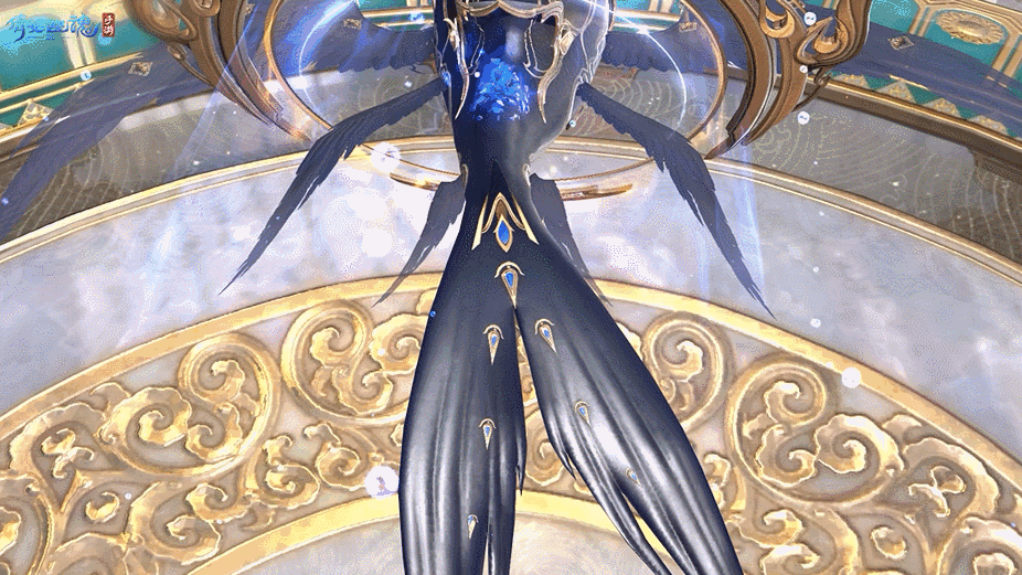 蓝鲲穿梭其中,好似鱼跃龙门,又像鹰翔天际,为整个坐骑更添几分霸气。乘鲲而行,长长的尾翼不时飘洒下点点星辰,华丽至极。玄鲲星辰涌动,振翅欲飞,不仅外形高贵,还颇具寓意。