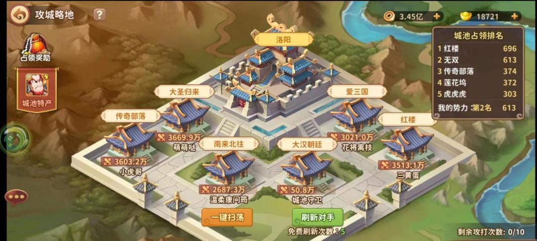 加入势力后,即可开启的玩法,攻占对应城池,积分排名前三即可获得武将碎片,满50即可合成